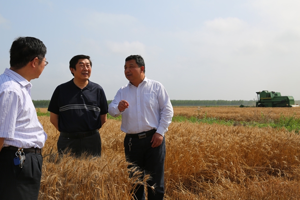 6月7日,苏垦农发股份公司总裁胡兆辉一行到宝应湖检查指导三夏工作,宝应湖农场党委书记魏军民、副总经理夏永龙陪同检查。