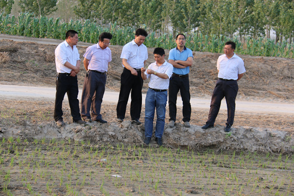 姜建友一行实地查看了旱整水栽栽插稻、农科所摆栽田、大华种业滨淮分公司、七大队在田水稻长势等现场。在场期间,姜总裁详细了解滨淮分公司三夏生产进度,总经理郭世平就大小麦收获、水稻栽插情况、保种情况等方面工作向姜建友作了汇报。