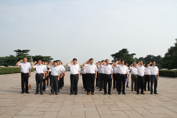 接着,大家怀着无比激动和崇敬的心情,来到雄伟壮丽的烈士纪念碑前,举行凭吊祭奠仪式。姜建友总裁代表公司向革命烈士敬献花篮,全体人员在雄壮的《国际歌》声中向革命烈士鞠躬默哀,并面对党旗,重温那段让大家刻骨铭心的入党誓言。此时此刻,每一个党员无不心潮澎湃,思绪万千。