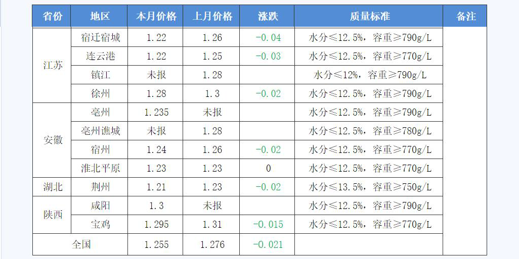 3月1日-3月31日,国内小麦价格滞涨回落。各地小麦价格月度变化情况如下: