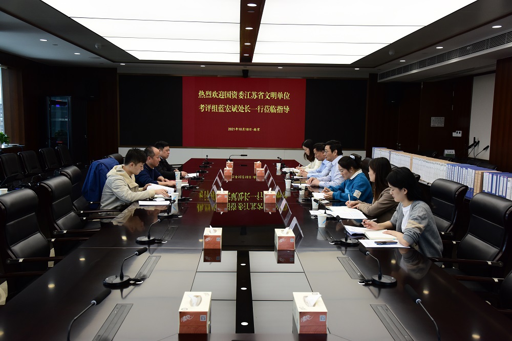 10月18日,省国资委群众工作处三级调研员蓝宏斌一行三人莅临苏垦农发评审江苏省文明单位创建工作。苏垦农发党委书记王立新,党委副书记、工会主席倪志愿参加。