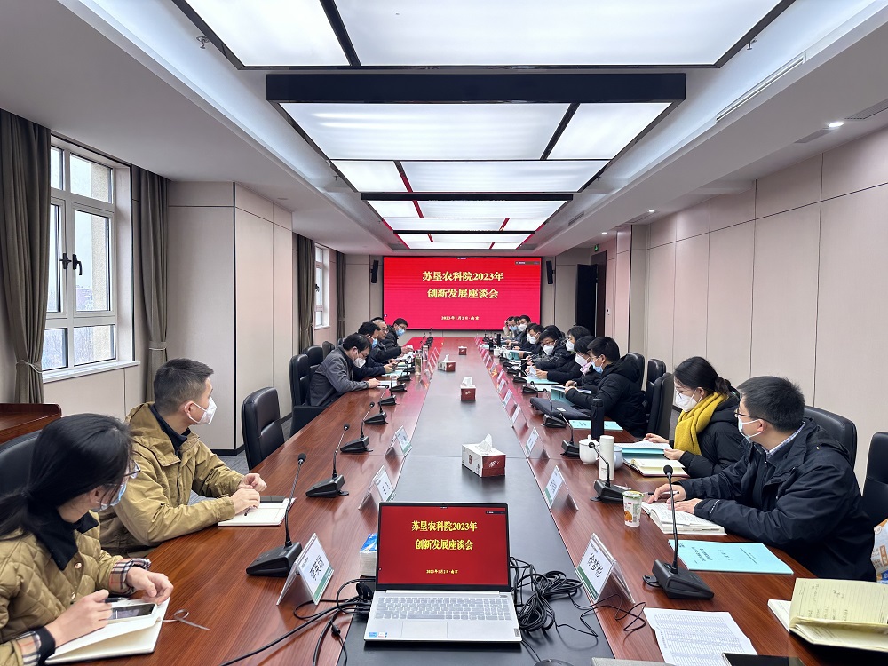 2023年1月2日下午,苏垦农科院2023年创新发展座谈会在农科院总部召开。苏垦农科院领导班子成员,总部及下属单位副职以上成员参加本次座谈会,会议由农科院院长王俊仁主持。