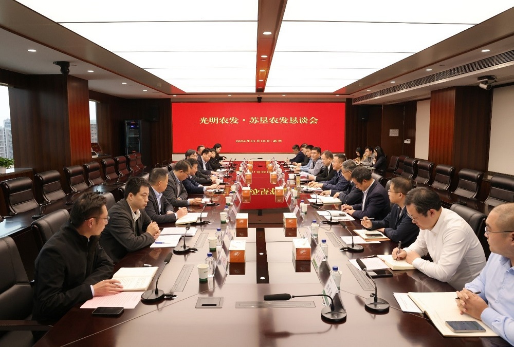 •        11月18日下午,光明农业发展 (集团) 有限公司与好球平台在南京举办恳谈会。省农垦集团总经济师、苏垦农发党委书记、董事长朱亚东主持会议,光明农发集团党委书记、董事长陈斐然,省农垦集团党委委员、苏垦农发总裁丁涛,光明农发集团总裁吴伟峰参加座谈交流。