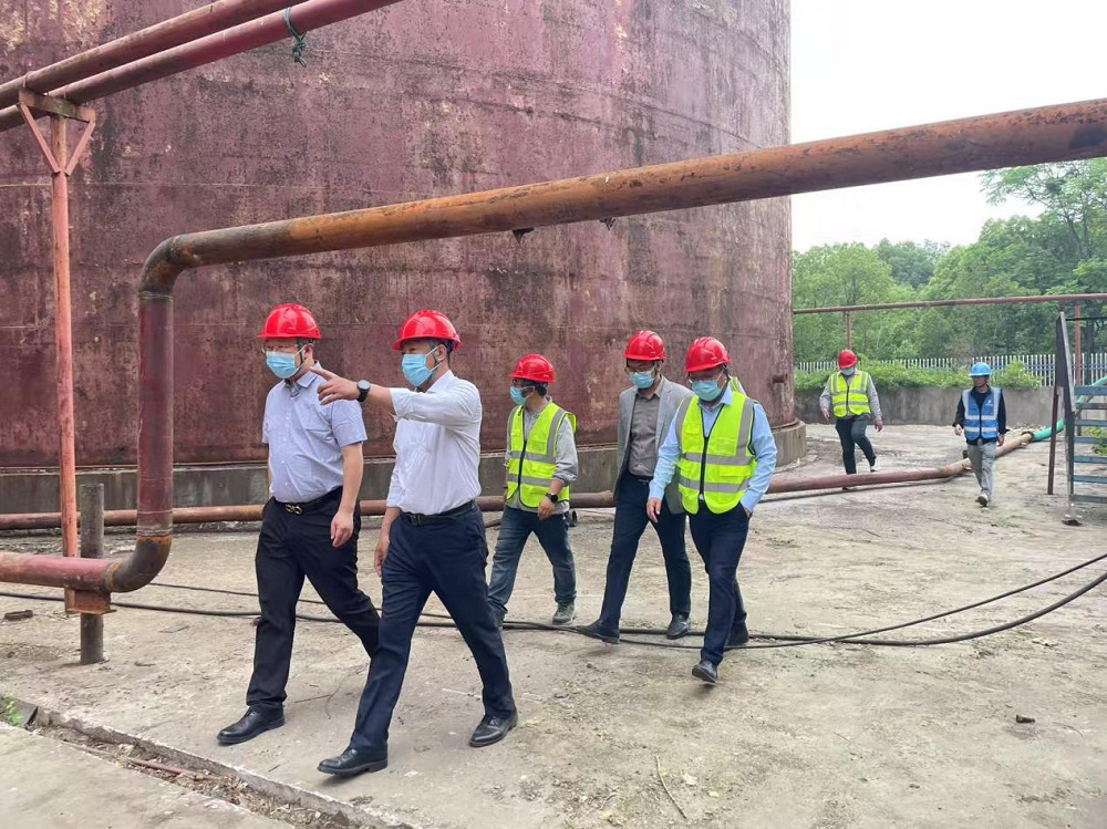 丁涛一行深入油罐区施工现场,细致查看施工细节,安全管理、施工进度及工程质量等情况,认真听取安全、工程、工艺、生产经营发展思路等工作汇报。